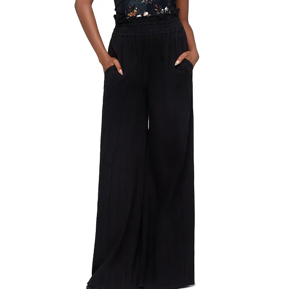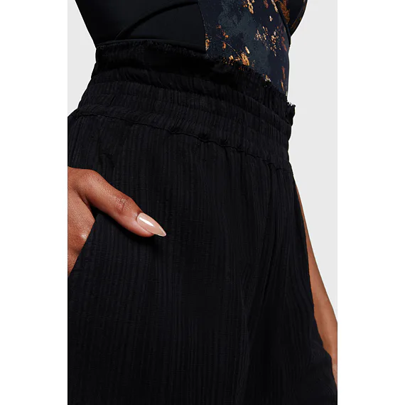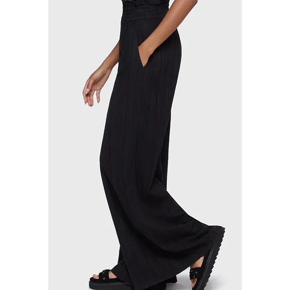 Tyto dámské kalhoty KILLSTAR zaujmou pohodlným střihem a výraznou siluetou. Jsou vyrobené z měkké texturované tkaniny, která je příjemná na nošení a působí lehce strukturovaně. Široký elastický pas s úpravou surového lemu dodává kalhotám ležérní charakter, zatímco dramaticky široké nohavice vytvářejí volný, splývavý pohyb. Praktické boční kapsy doplňují celkovou funkčnost a každodenní využití.